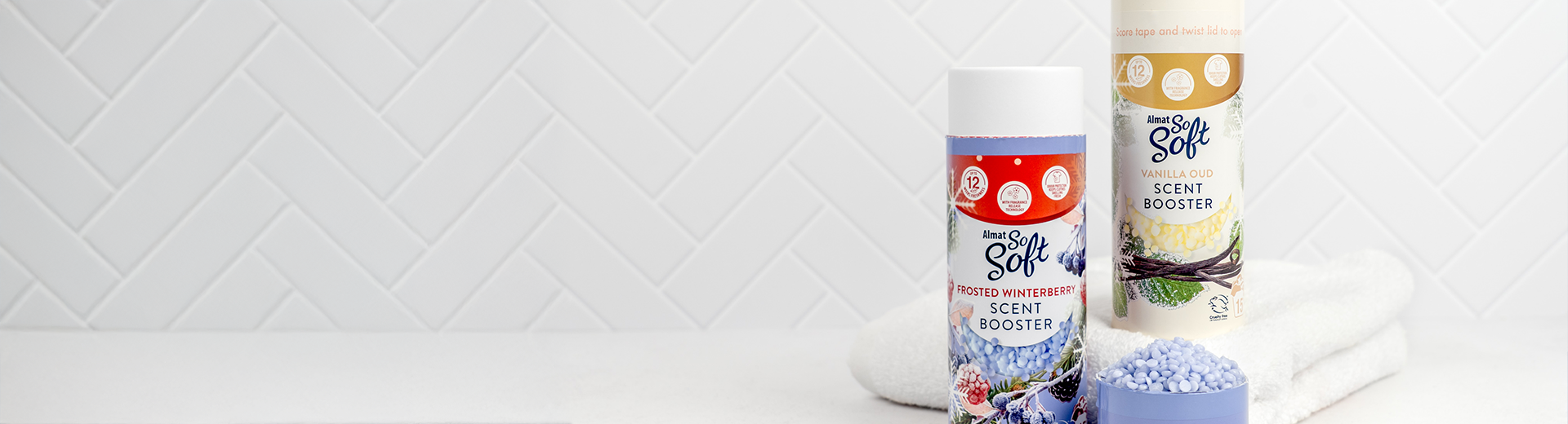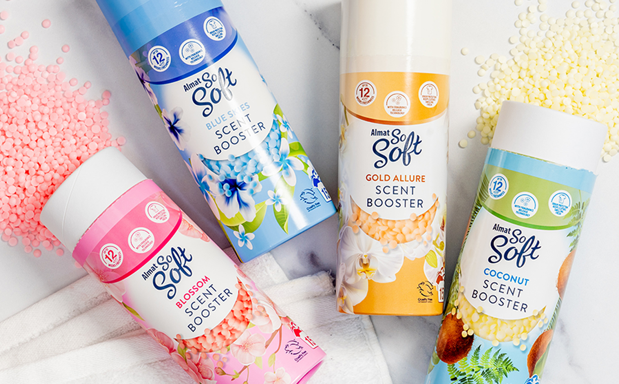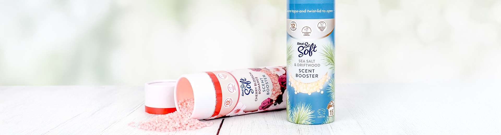 a first-to-market scent booster range delivered in a fully recyclable cardboard tube for aldi